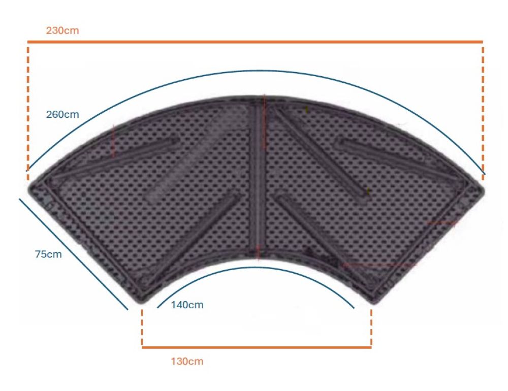 Tavolo Mezzaluna Polietilene cm.230x130 prof. 75 (superficie curva cm.260x140)